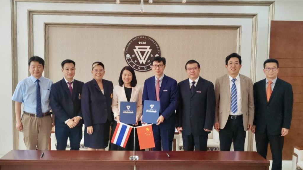 4月28日下午,泰国清莱府皇太后大学校长玛奇马•纳拉迪索恩一行到访我校,校长胡金明会见代表团并签署合作谅解备忘录。副校长牛治亮,云南华文学院院长王秀成,对外合作交流处处长杨叶华参加会见。胡金明对代表团一行表示欢...
